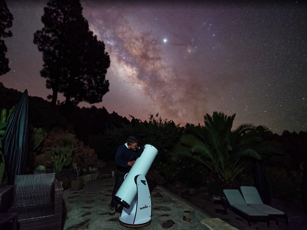 Am Abend lassen wir den Tag mit einer Foto- und Beobachtungssession an unserer Unterkunft ausklingen – unter dem tiefdunklen Himmel von La Palma.